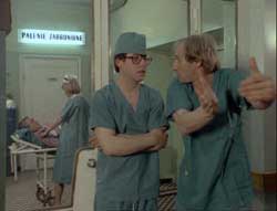 Akcja przenosi się na korytarz szpitalny wypełniony łóżkami z pacjentami. Kołek obcałowuje przechodzącą pielęgniarkę.
