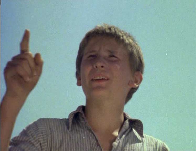 | P70 wzlatuje pod niebo, kołysząc się lekko niejako w rytm muzyki z offu. | ![]() |