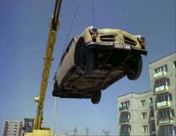 | Zapinają linami P70. W środku pozostaje śpiewaczka. Kubiak zaczyna nieudolnie sterować dźwigiem. | ![]() |